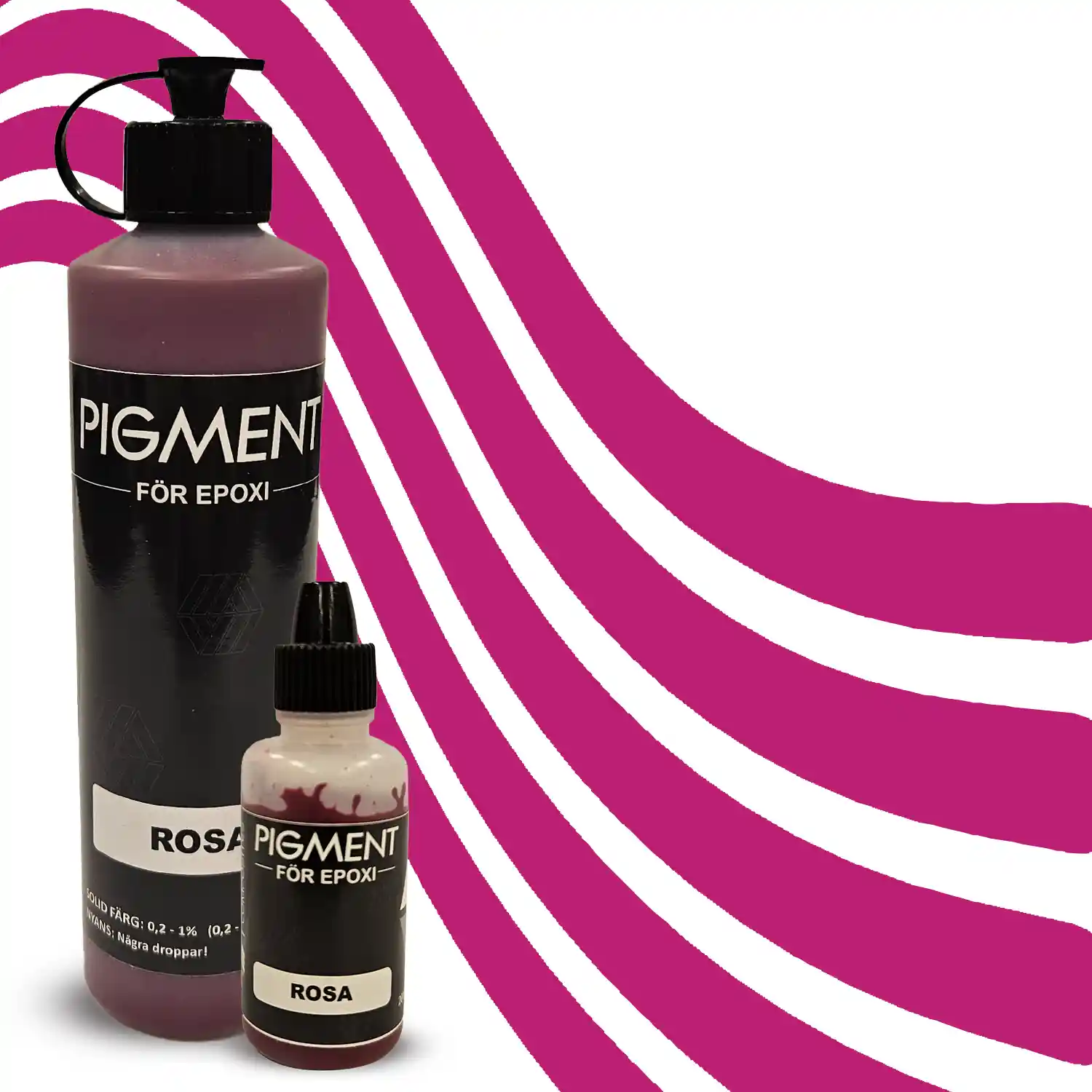 Epoxipigment rosa finns i 20ml (upp till 5kg epoxi) och 200ml (upp till 50kg epoxi).